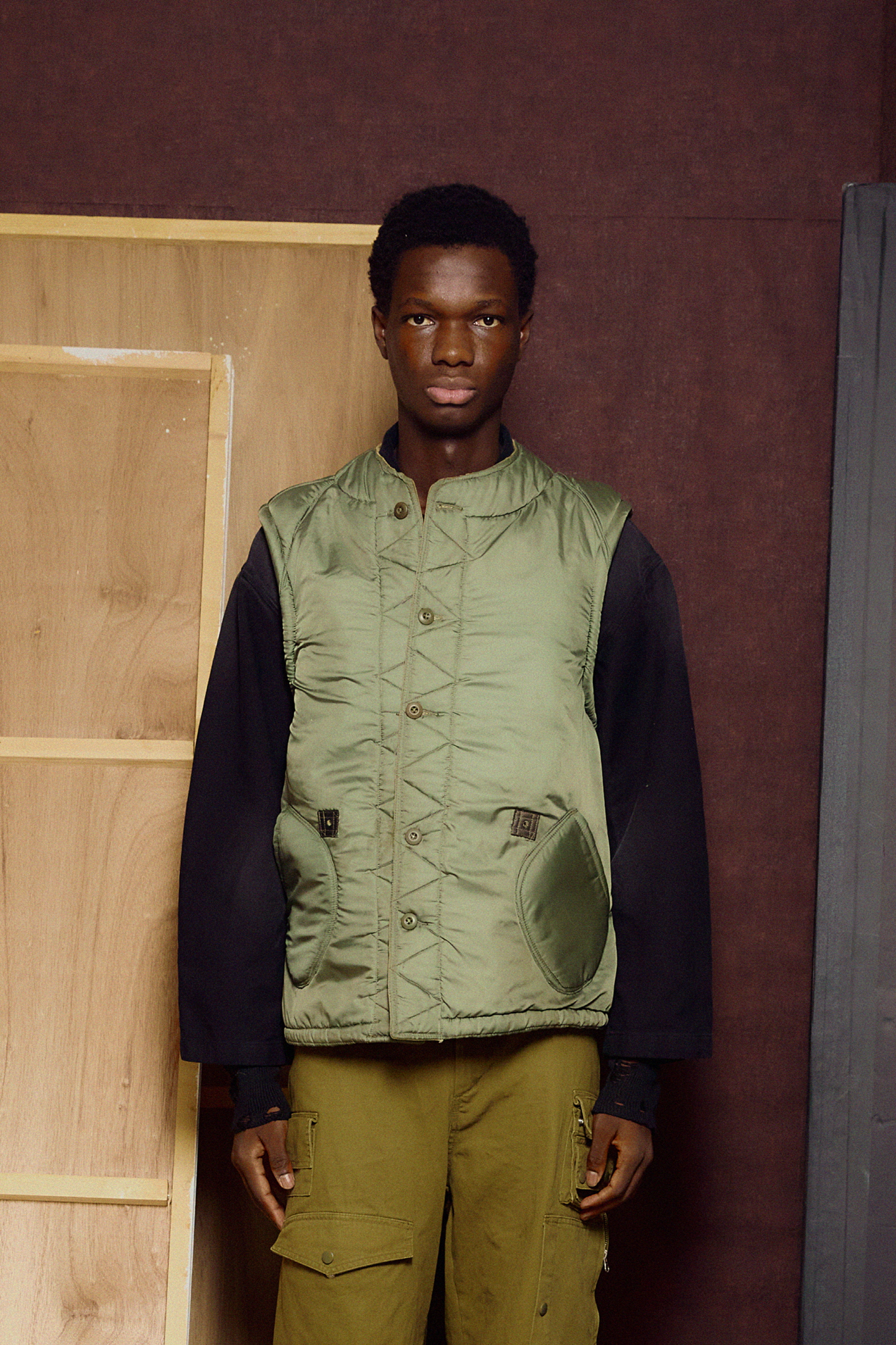 - 기본 usaf field jacket liner 형태를 vest 로 재해석
