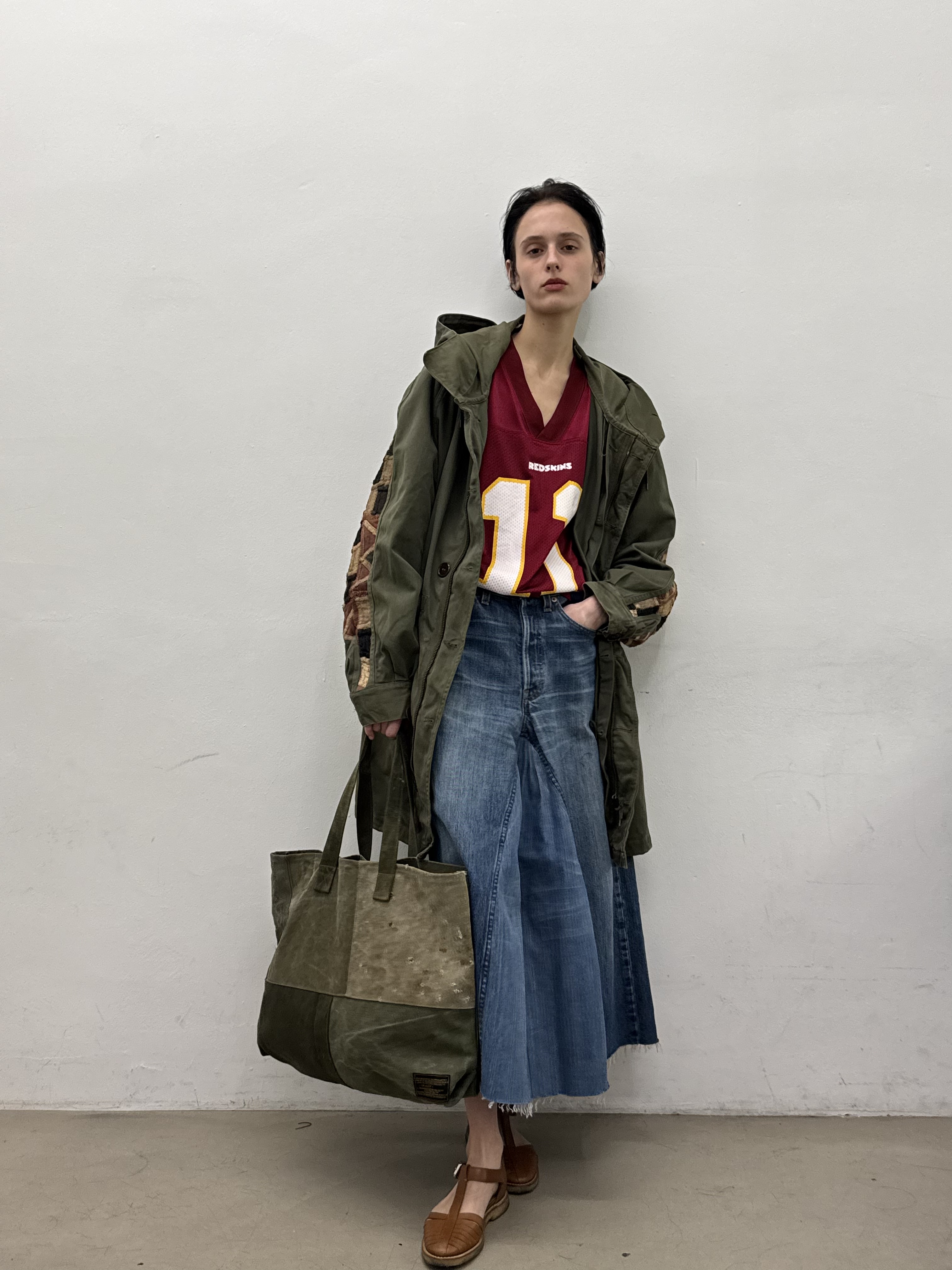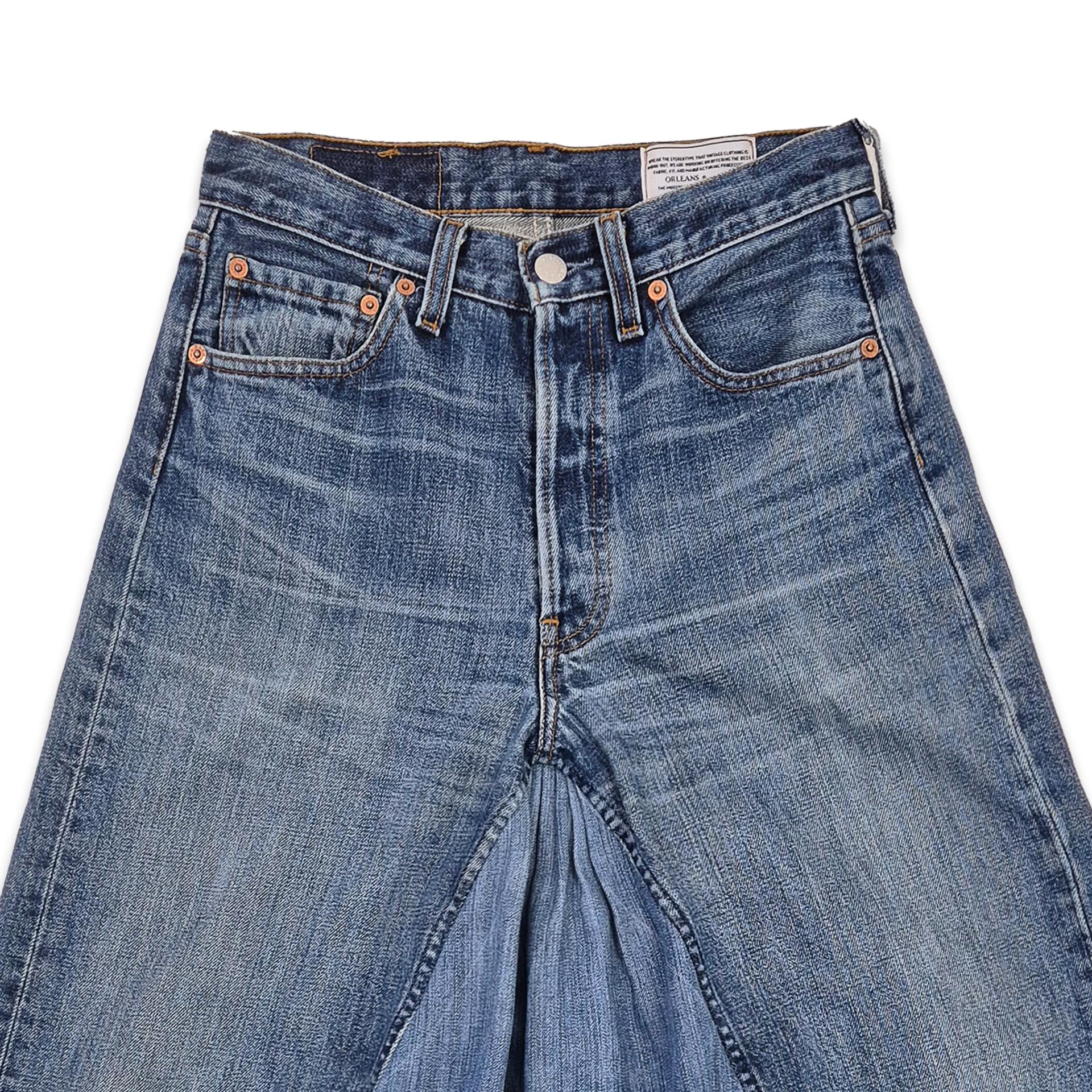 - 2개의 빈티지 데님을 사용하여 스커트 형식으로 재구성