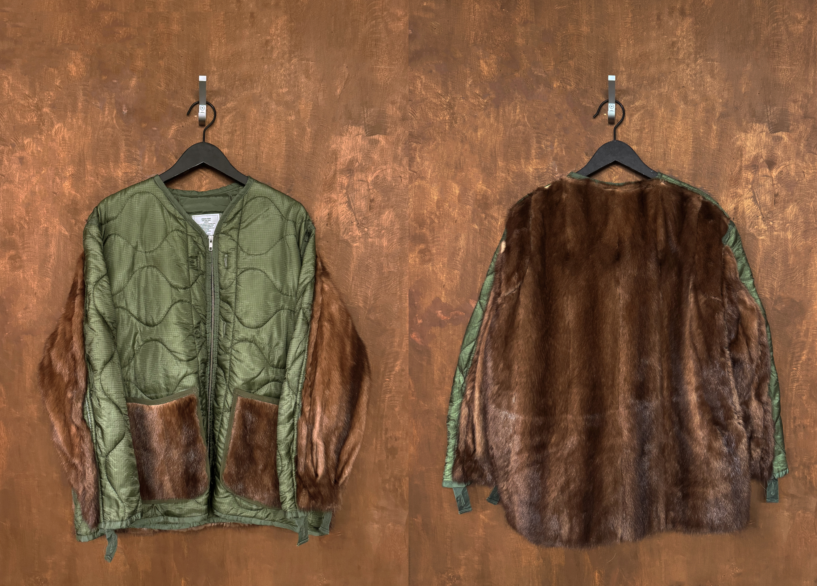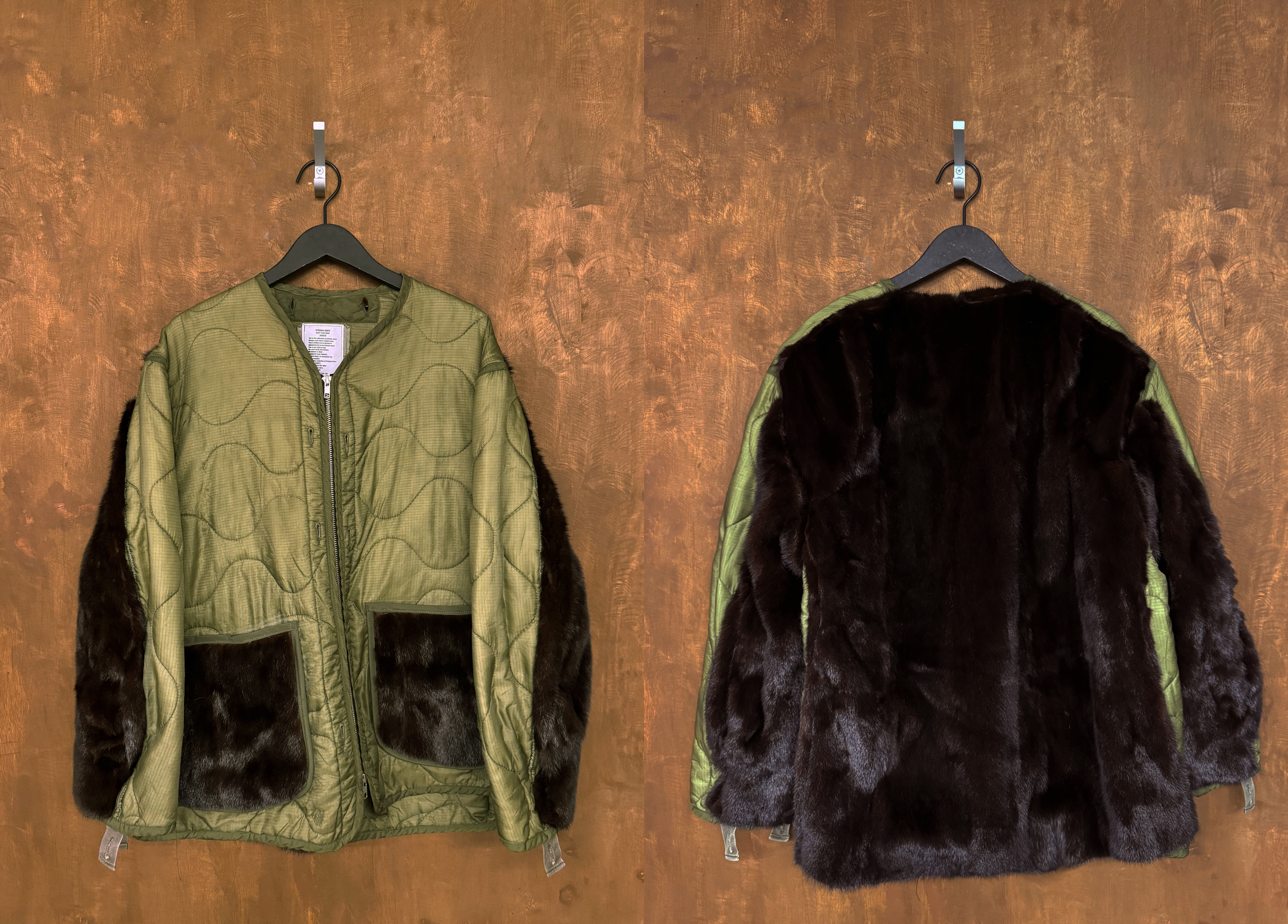 - 오리지날 M-65 Liner와 빈티지 밍크코트를 해체하여 리워크한 자켓
