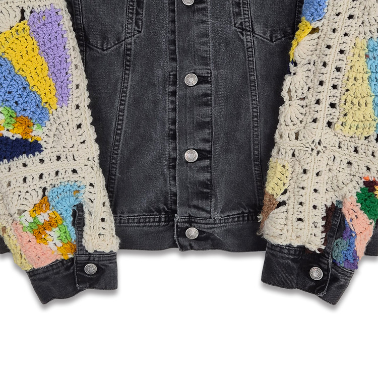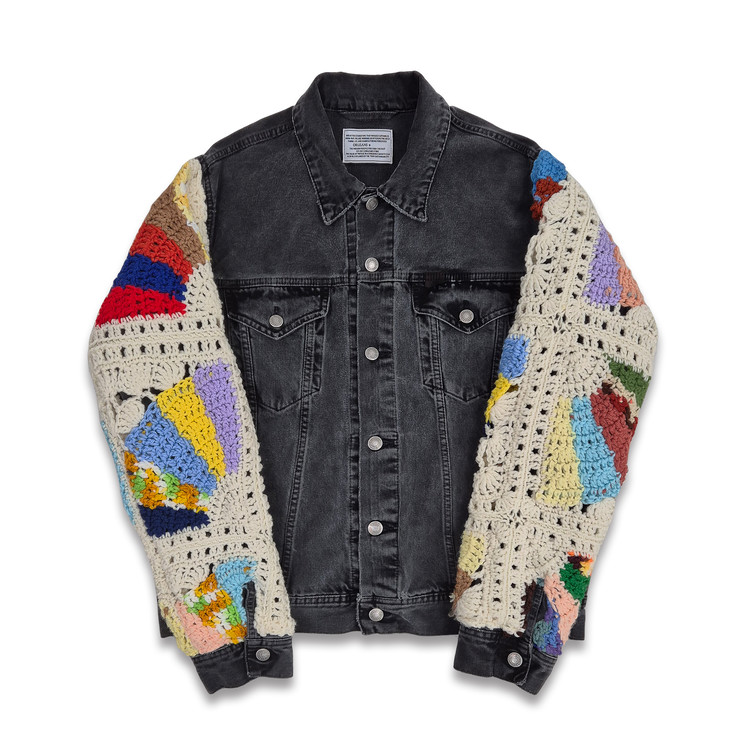 - 빈티지 데님 자켓, 크로쉐 니트 원단 리워크