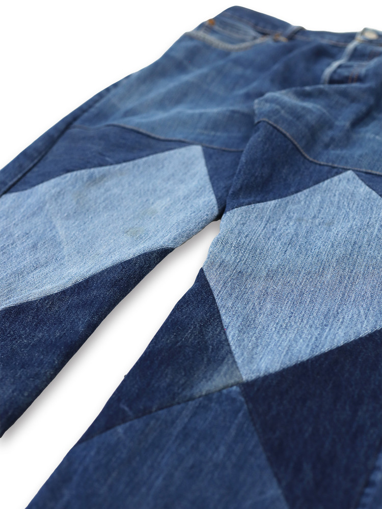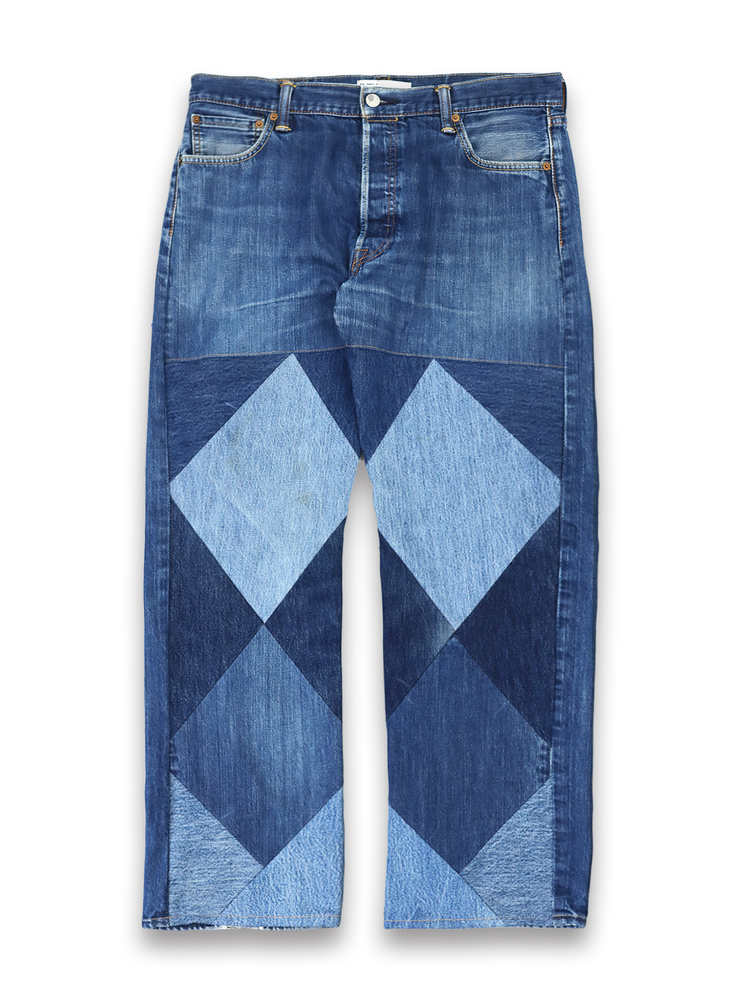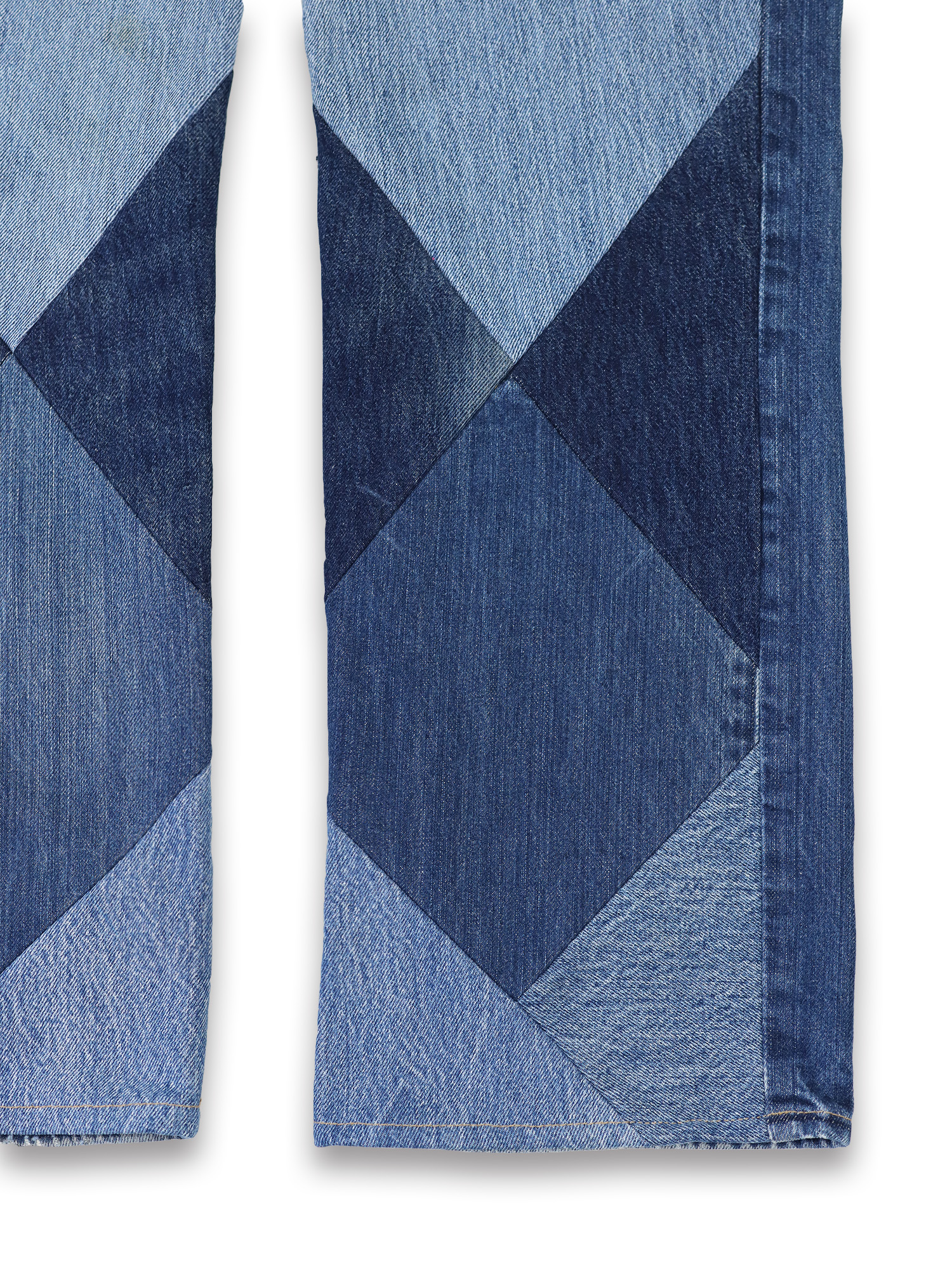 - 아가일 패턴으로 정교하게 구성한 데님 원단의 불규칙한 패치워크
