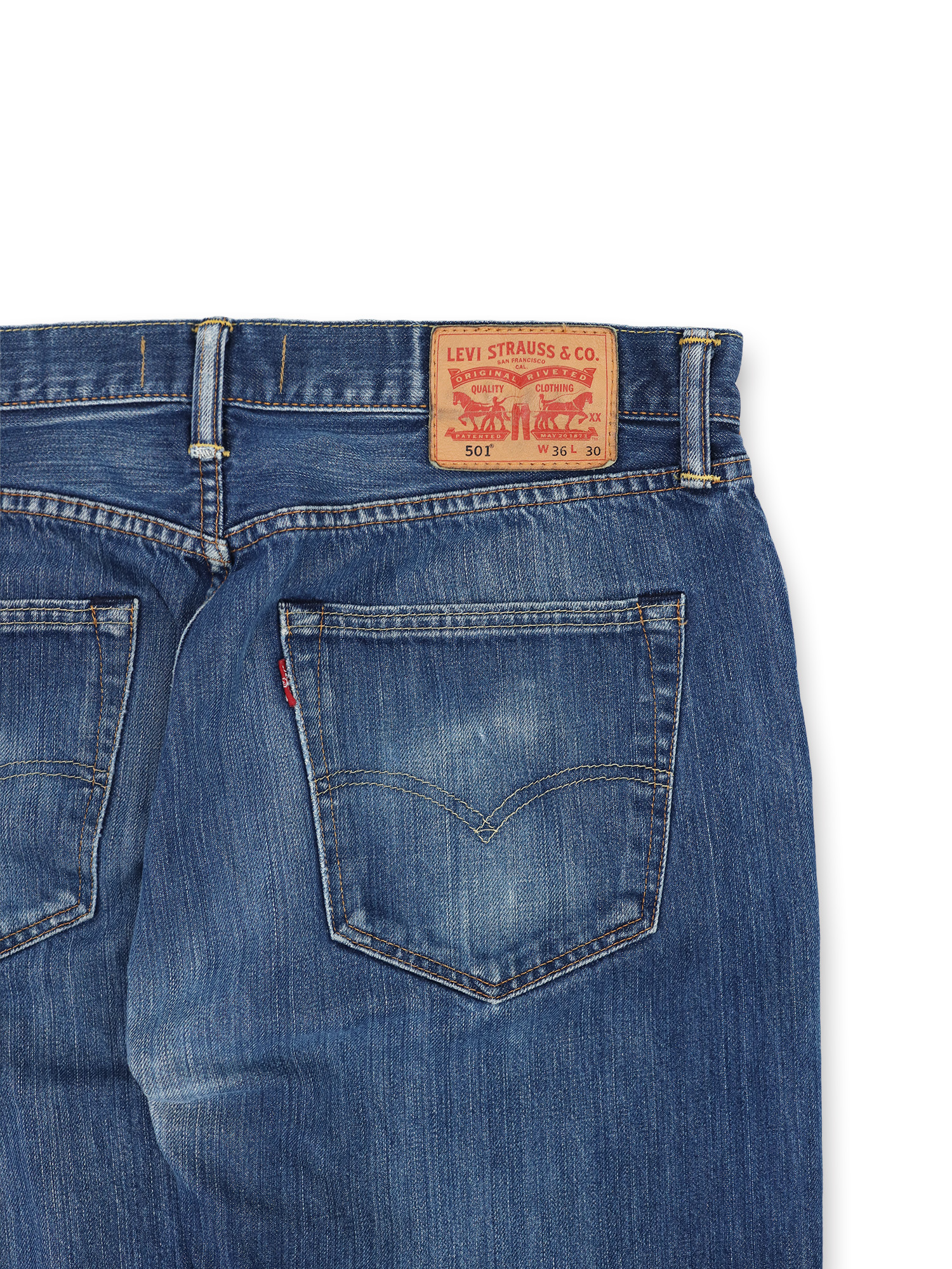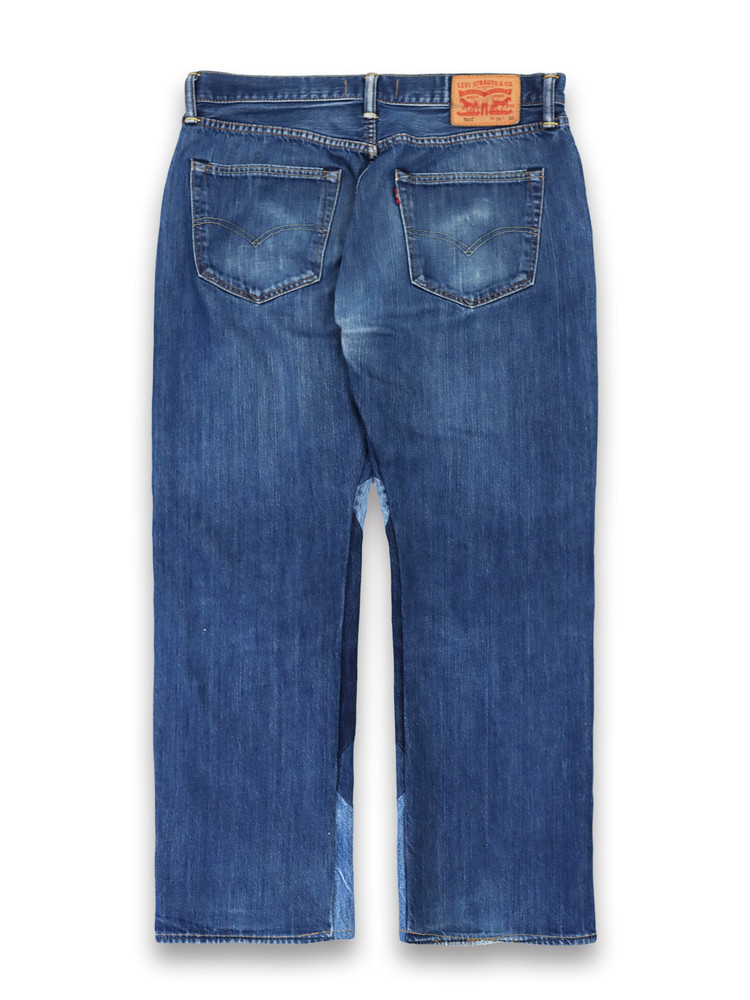 - 빈티지 워싱이 돋보이는 탄탄한 데님 원단 위에 유니크한 패치워크 디자인을 더한 팬츠