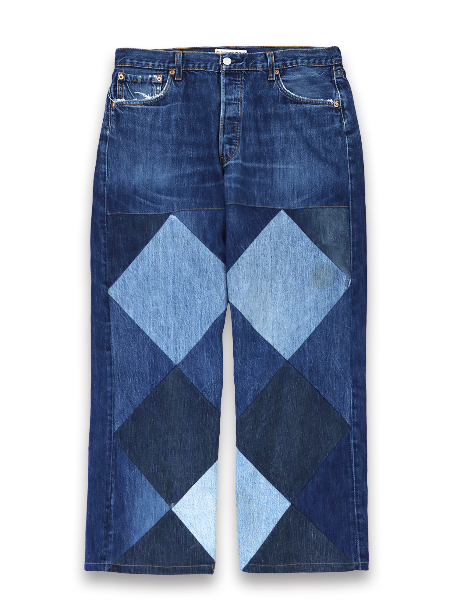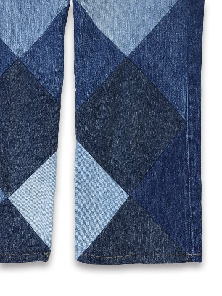 - 아가일 패턴으로 정교하게 구성한 데님 원단의 불규칙한 패치워크