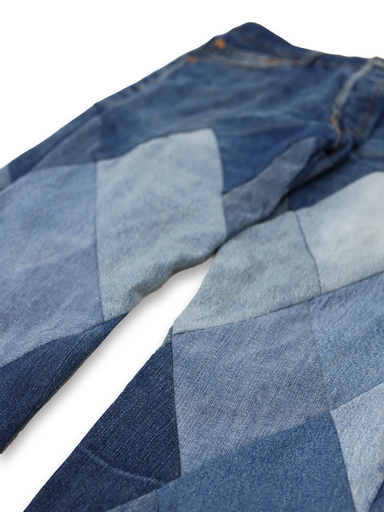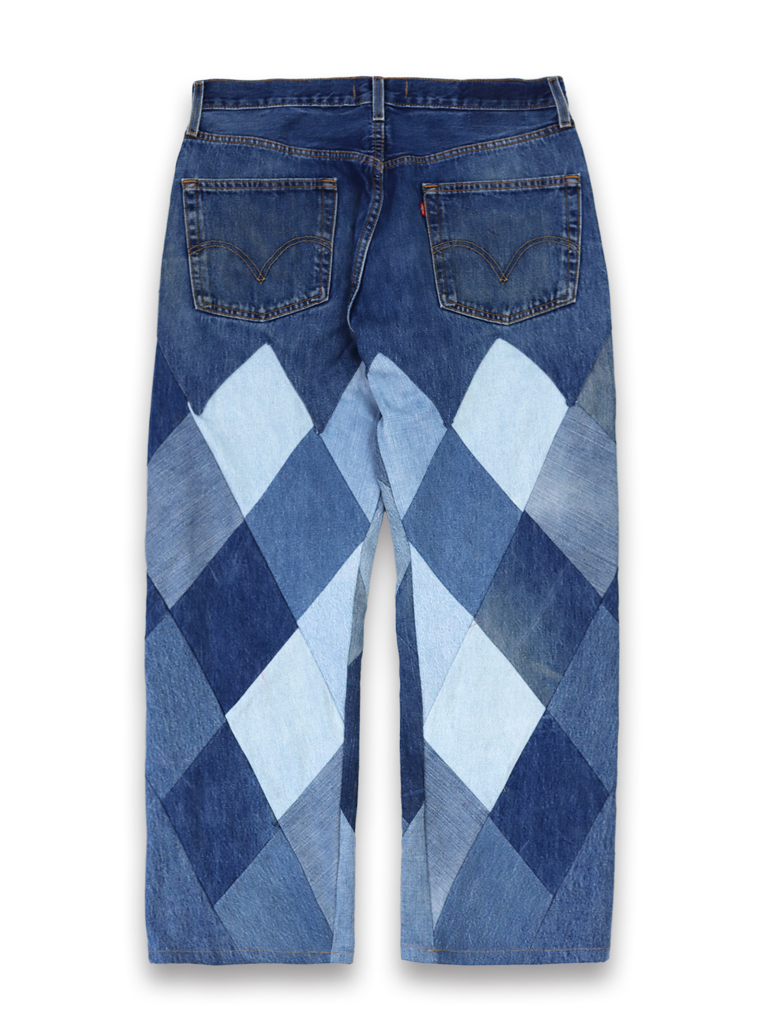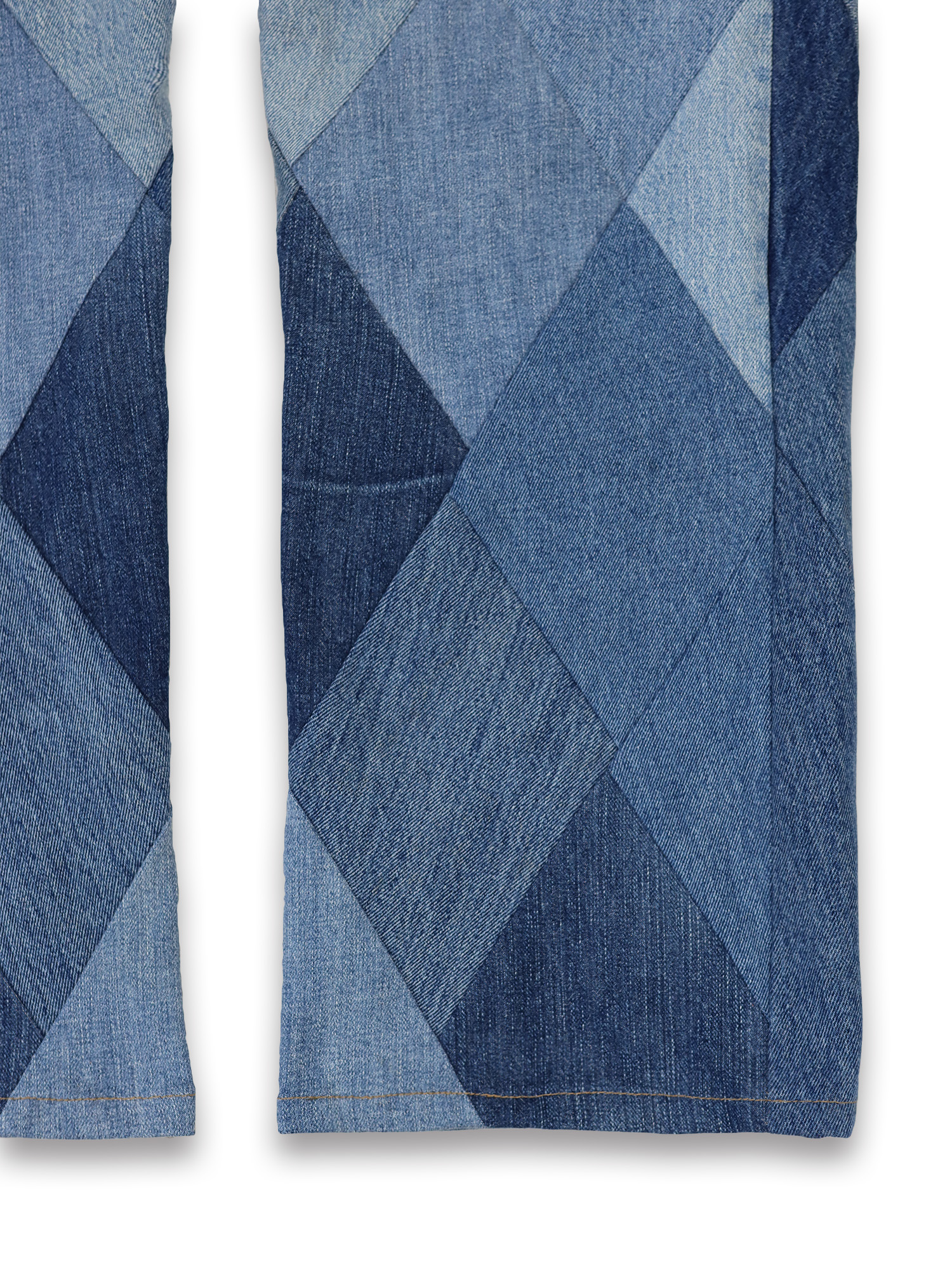 - 아가일 패턴으로 정교하게 구성한 데님 원단의 불규칙한 패치워크