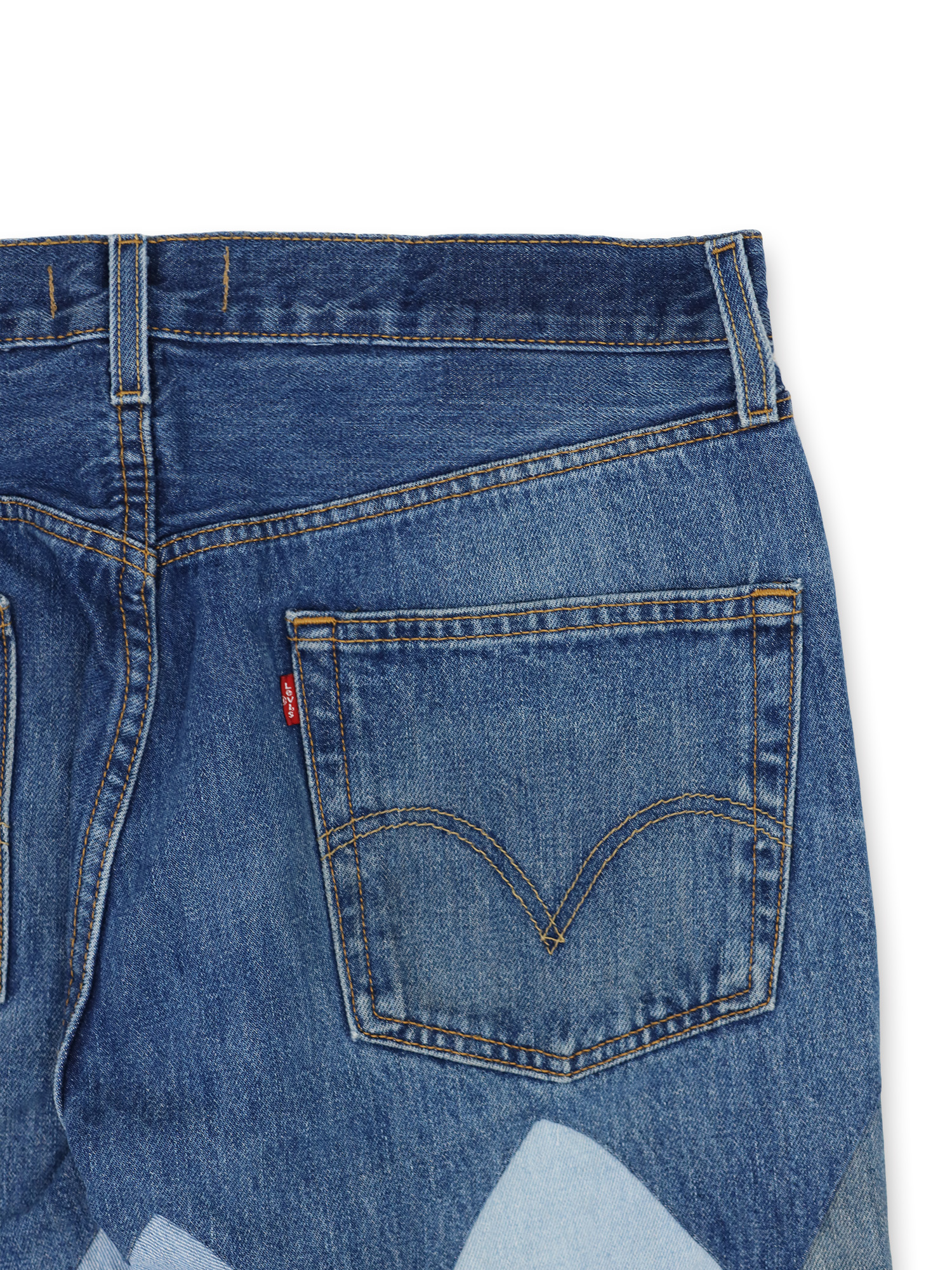 - 빈티지 워싱이 돋보이는 탄탄한 데님 원단 위에 유니크한 패치워크 디자인을 더한 팬츠
