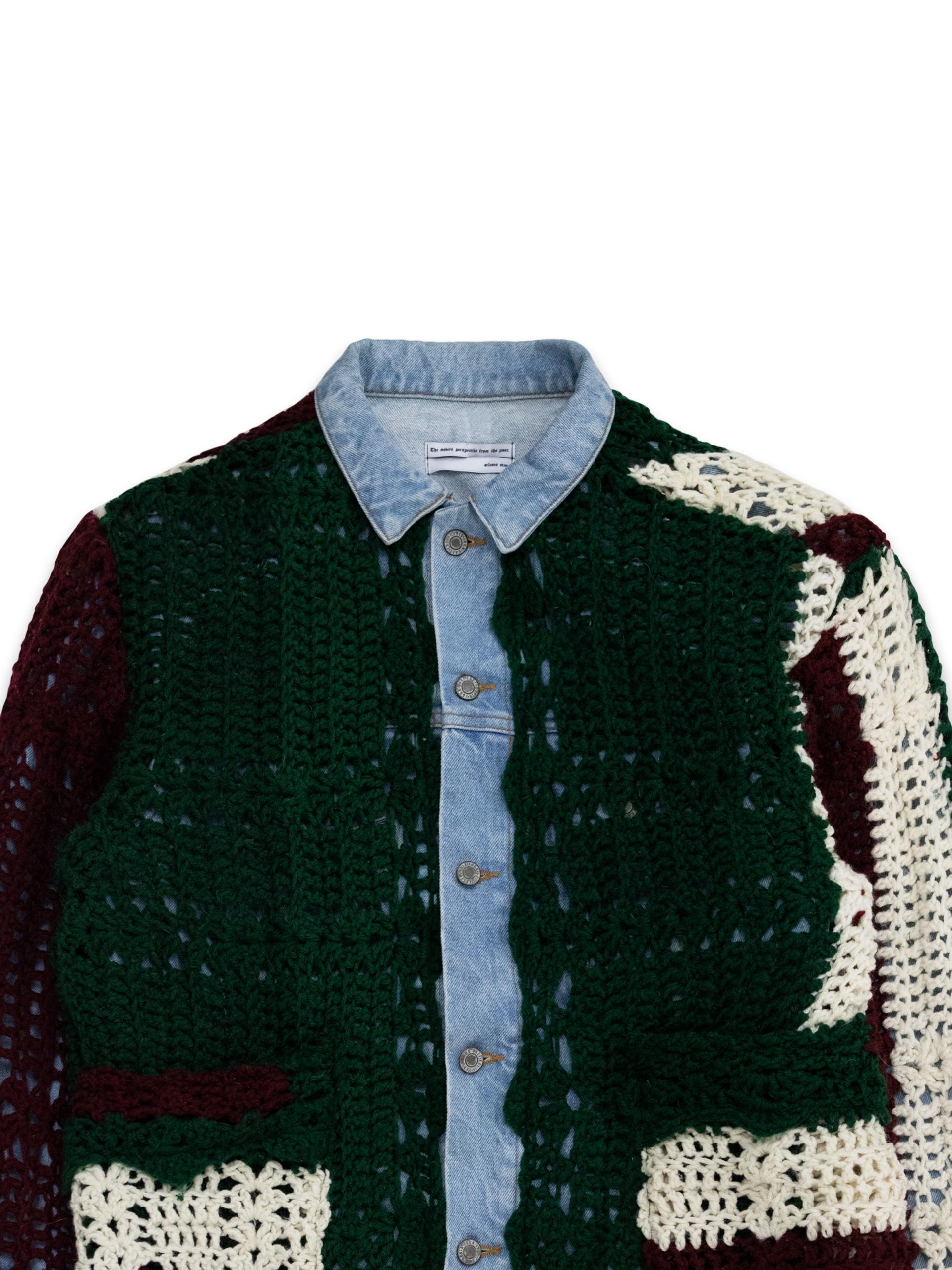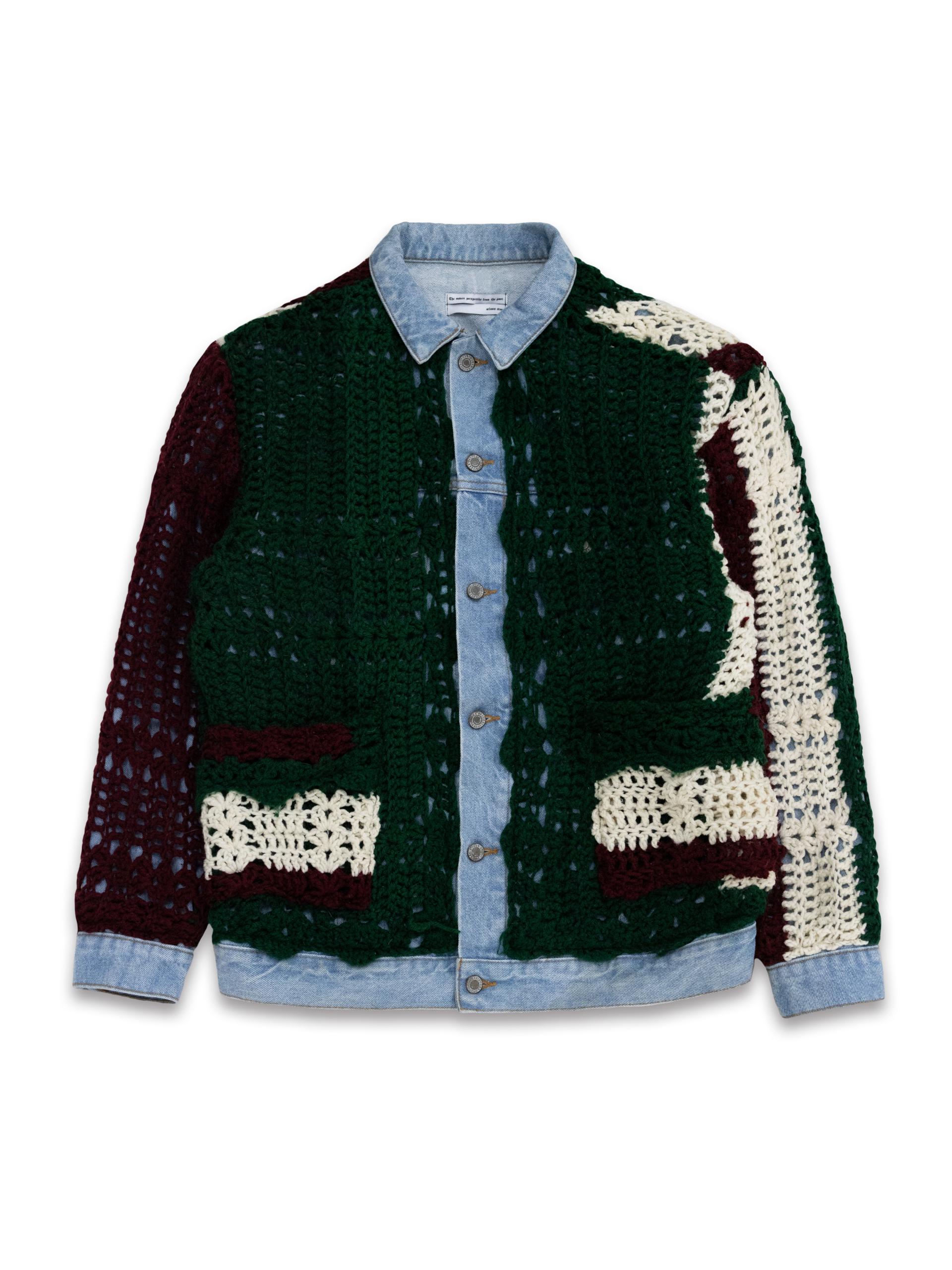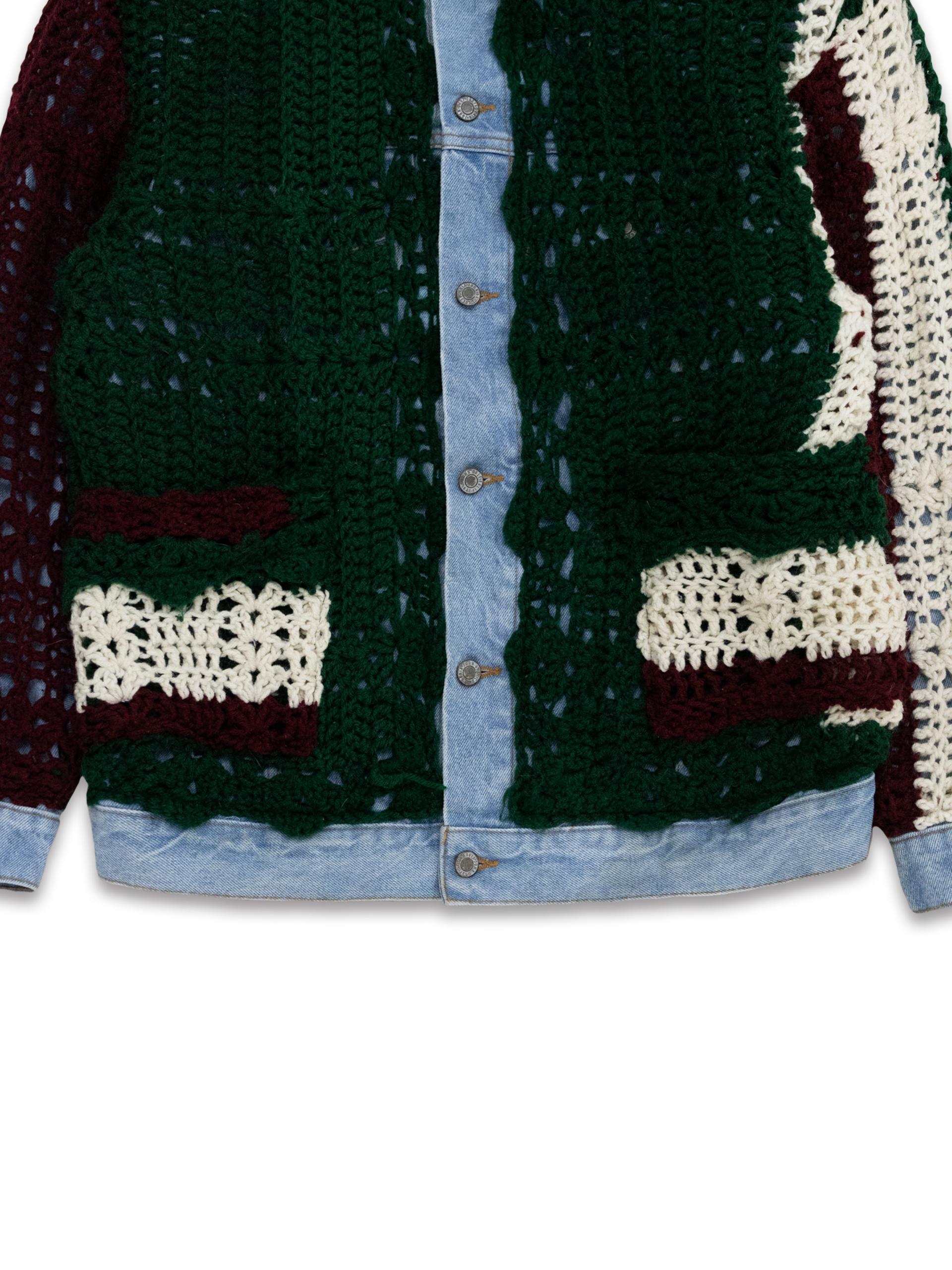 - 데님 자켓과 crochet 니트 패브릭을 결합하여 제작