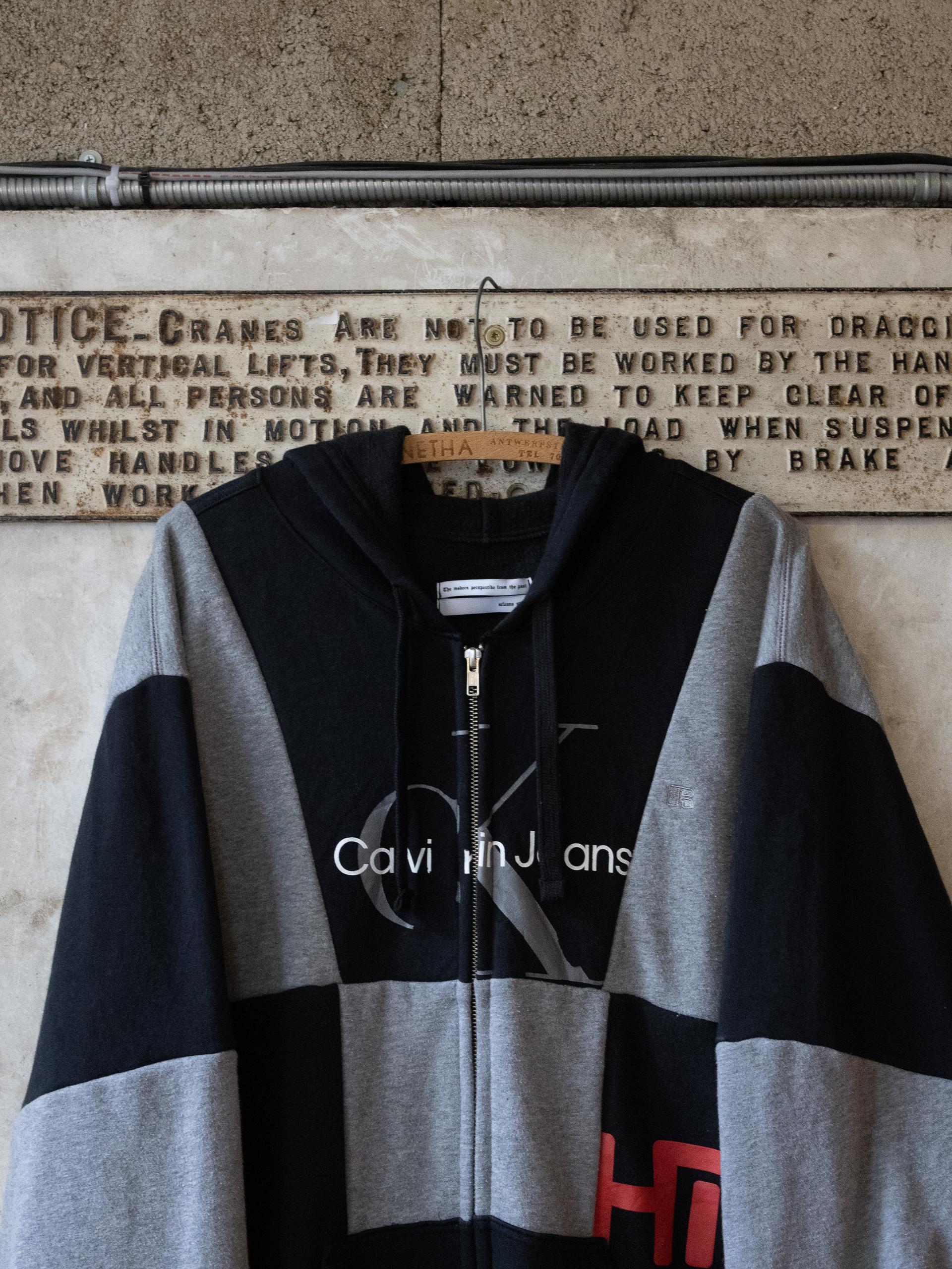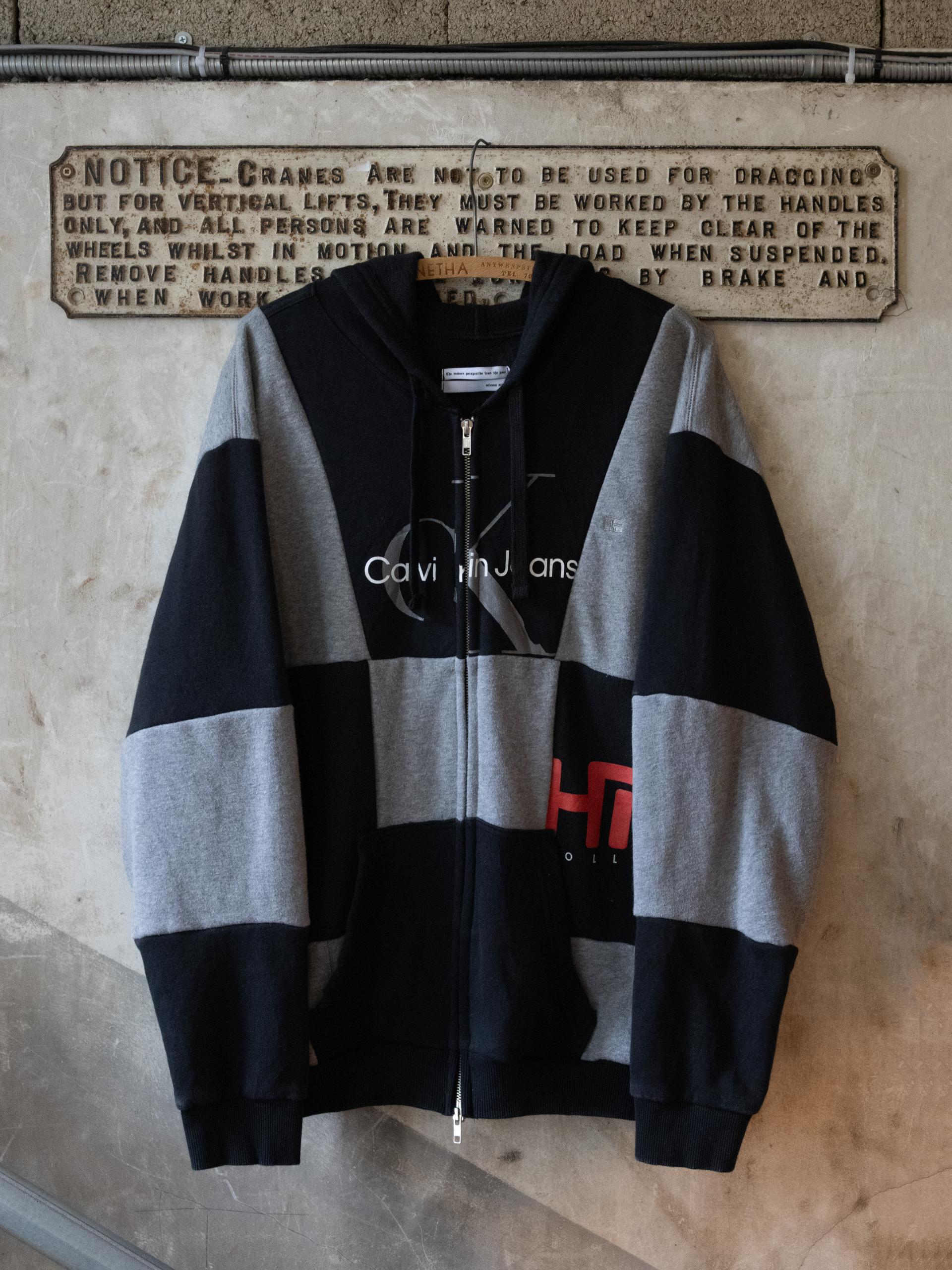 - 빈티지 스웻 셔츠를 패치워크하여 제작된 스웻 후드 집업