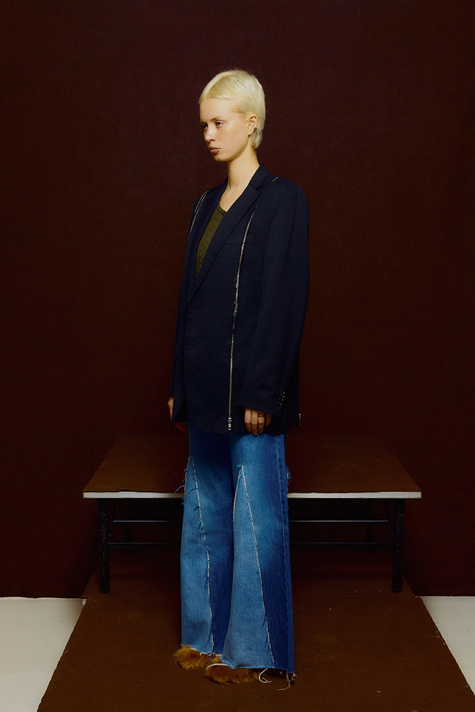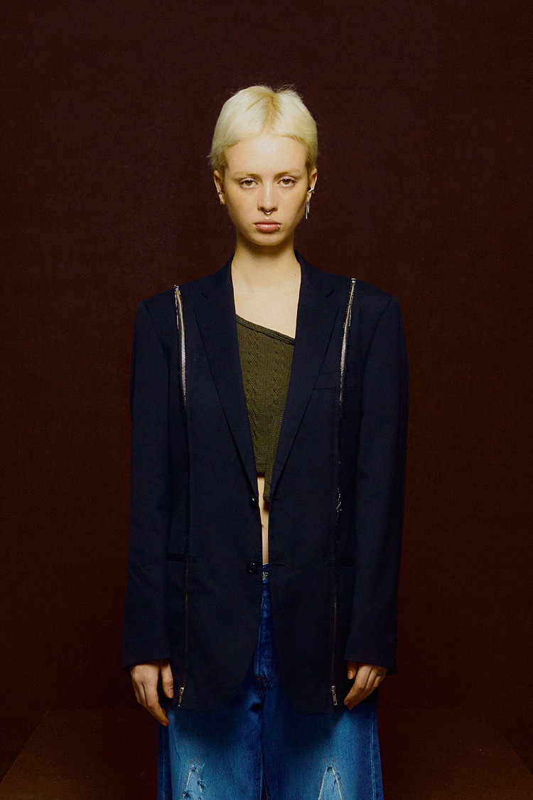 - 빈티지 블레이저에 지퍼 포인트를 결합