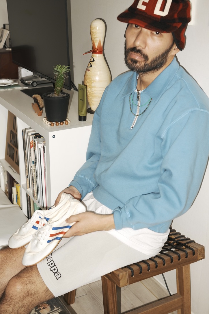 - 봉제 이음새 의 퍼커링과 하프 반 집업 디테일이 특징